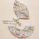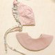 寶寶帽跟圍兜兜 圍兜與帽子雙面都可當正面依造型搭配。 此款圍兜每個角度都能當成正面,扣子處不規則領狀,添加了小俏皮。