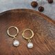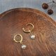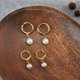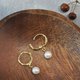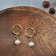 厚版小型黃銅鍍金耳環,搭配搖擺天然珍珠,讓圈圈上添加氣質。