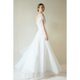 露肩設計強調纖細鎖骨線條,搭配層層疊疊的絲緞歐根紗布料,營造出浪漫且高貴的氛圍。