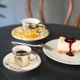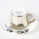 杯子及茶托上的顏色和圖案皆為藝術家手工繪製,茶托上金邊也是手工描金,細節精美講究的產品。
