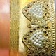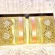 表地はゴールド系のリボンを一本一本ハンドメイドにて組み合わせて一枚布としてデザインした、唯一無二の物で他に同じ物は全くありません。