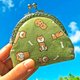 關起來會發出”喀”的復古口金零錢包,適合放各種小物。布料上有幾隻不同的柴犬,底色是偏抹茶綠色的棉布。
