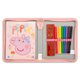- 內容物: 8色水筆 (紅、黃、黑、紫、橙、咖、深藍、綠) 圖案尺 - 透明紅 (圖案隨機) 圖案尺 - 透明黃 (圖案隨機) 塗畫本 塗畫本: 封面: 雙粉紙 內頁: 空白書紙 x 20張 底部: 單粉紙