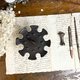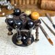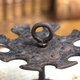 輪狀上盤的六個精確凹槽,專為穩固地卡住印章手柄而設計,確保您的珍藏印面朝下,避免磨損。鑄鐵表面帶有歲月沉澱的自然鐵鏽色和深黑色包漿,無需矯飾,散發出獨特的質樸工業風魅力。中央提環設計,不僅美觀,更便於隨時移動。