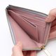內側附有零錢包與2張卡片夾層可收納信用卡等物品。雖然尺寸迷你,仍可以流暢地裝入鈔票。本次鈔票零錢包的尺寸可剛好裝在口袋裡,輕裝出門的時候都能讓您享受使用優美的漸層色皮革。