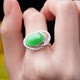 【名稱】陽綠翡翠蛋面戒指 18K金鑽石