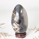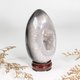 將瑪瑙與共生水晶切磨成蛋形,呈現溫潤晶亮的質感,