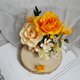 企業訂單或__不含假日5日內的急單__,請事先來信詢問是否有空檔可安排,謝謝您的配合:) __**如需賀詞,請在下單時主動私訊祝賀文字(店名/祝賀內容/送禮人署名)**__,我們會幫忙排版印刷 【甜橙】圓形不凋玫瑰名片座 **尺寸|**木頭底座直徑寬約11-12cm,高度約12cm **色系|**圖片示範色為橘黃,亦可依照您的喜好客製配色(請先私訊) **花材|**主花為2朵不凋玫瑰(永生花),配花是不凋繡球花與季節性乾燥花材、葉材 **備註|** 1. 客製商品交貨前都會拍給您完成品照,訂購後請務必每日上站留意我們的訊息 2. __**如需賀詞,請在下單時主動私訊祝賀文字(店名/祝賀內容/送禮人署名)**__,我們會幫忙排版印刷 3. 木頭片大小、紋路不一,且會有部份表皮脫落或不規則凸起等狀況,以上均屬植物自然形態,無法接受者請勿下單 **包裝方式|**此款商品提供禮盒包裝,如需透明提袋請自行選購 **自取地點|** 新北市蘆洲區復興路69號,近三民高中站2號出口 (工作室無店面,請__事先與我們預約好時段__再過來取貨) **配送方式|**此款花禮提供超取/郵寄/黑貓宅配 寄送一律__使用乾淨二手紙箱裝箱__,過程中會確保花禮安全無虞送達 寄送受限於物流狀況,__偶有延誤1-2天的情形,建議事先預留緩衝時間__ **超取:**正常寄出後第3天可收到(ex週五寄,週日到店) **郵寄:**一般隔天可收到,不可指定時間收件,六日不送貨,運費$100/件 **黑貓宅配:**一般隔天可收到,可指定上午1點前/下午6點前收件,週日不送貨,運費按體積計算$170~$240 賣場作品皆為以往客人訂製的花禮 若您想瀏覽所有過往作品 歡迎到我們的FB粉專相簿觀看! ❗訂製注意事項❗ ◾ 商品皆採預約制,建議提前5~10天前預約,有急單需求可事先來信詢問是否能插單。 ◾ 配花具有季節性,我們會盡量以類似色系呈現,但**成品皆無法100%與原圖相同,無法接受者請勿下標。** ◾ 訂製前請與花藝師協調好色系、特殊喜好,__進入製作程序後不得更換色系__,欲更換色系者,將酌收耗材費$1000。 ◾ 商品在製作完成後,會拍照跟您確認,提供一次免費修改的機會,雙方確認沒問題後才會寄出。 🌸關於不凋花🌸 ◾不凋花是鮮花透過甘油和保存液浸泡後,重新染色製成的花朵,價格較乾燥花昂貴 ◾__可保存時間約2-3年__,之後隨時間的拉長,可能會有褪色或是掉落的情況 ◾商品不需要澆水,請置於乾燥通風處,忌潮濕、陽光直射,雨天時可開除濕讓花兒維持乾爽