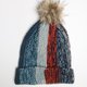/百變精品/藍黃直條紋雜線毛帽細軟美麗諾純羊毛帽/手工編織藝術 - 帽子 - 羊毛 藍色