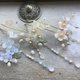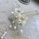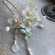 花朵為天然白水晶綁成,葉子為東陵玉雕刻,使用天然淡水珍珠做花心,天然石顏色深淺紋路每片都不盡相同,也可能會有雜質,除珍珠的枝梗外其餘枝梗皆為鋼線做成,可以再線長範圍內調整姿態,但請勿握著花瓣調整,其它金屬皆為銅質,此款有長短兩條活動式垂墜,以上能接受再購買喔!
