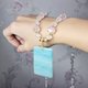 **◈設計師怎麼說** 嚴選冰綠天河石(幸運之石),相佐粉晶(愛情之石)、藍暈月光石(靈性第三隻眼)、白水晶(水晶之王)、六字真言(智慧)琉璃珠設計。 天河石無飾牌(平安無事)有如海景,望上去舒心宜人。 鍊身以鑽面星光粉晶、鑽面全美白水晶、藍月光、六字真言琉璃韻律安排,浪漫優美襯托主石色調,並寶石顆顆冰透水潤、色彩勻淨放光、閃現彩虹光,品相極美。 整件作品低調而華美,寓意十分吉祥,當環繞胸前,充分展現女性氣質柔美、華麗浪漫之情。 **僅此一件,等待福氣的主人出現^^** **天河石** 天河石(Amazonite)是一種很年輕的寶石,發現於上世紀70年代,閃現著宛如河水般澈藍的光澤,亦有亮綠至亮藍綠的品種,閃現半透明的光影,相當迷人。 在古老的傳說中,天河石具有帶來財富的魔力,故被稱為「幸運之石」,能幫助人們帶來運氣和信心。 **無飾牌** 玉雕飾品發展至明末時,以「無(紋)飾」的玉牌最為盛行,並取其諧音為「無事牌」,亦有「平安無事」之意,作為人們祈求平安、健康的「許願牌」。 **粉晶** 粉晶(Rose Quartz)亦稱作薔薇水晶、芙蓉晶。 市場上的粉晶,主要分為2種:馬粉(馬達加斯加粉晶)、星粉(巴西星光粉晶)。呈現六芒星光者為上品,相當稀有。 希臘神話記載,愛神阿佛洛狄忒給了幼年帕里斯一條粉晶手鍊,帕里斯長大後,率領龐大的艦隊到斯巴達交涉,遇見當時世界上最漂亮的女子海倫,而海倫也被俊美的帕里斯王子迷醉得不能自制。後帕里斯將海倫帶回了特洛伊,舉行了隆重的婚禮,成為夫妻。因此,人們認為薔薇水晶能招來好人緣與愛情。 **藍暈月光石** 月光石(Moonstone)玉質溫潤細緻、暈彩夢幻優雅,屬拉長石家族寶石,與日光石、夜光石、天河石一樣,皆閃現如絲綢般的豔麗色澤,宛如月光、日光一般閃現迷人火彩,故又名太陽石。 古羅馬人相信,月光石(Moonstone)是月光所形成,透過月光石能看見月光女神黛安娜。在古印度,月光石為第三隻眼的符號,可使靈性的理解力提升,心智更加澄淨。 **白水晶** 白水晶(Crystal)以乾淨透明者佳,歷高溫、高壓、億萬年所形成。 相傳,赫拉克勒斯是希臘神話中最勇敢的英雄,每場戰役中,他總是執著閃閃發亮的白水晶盾牌,盾牌將天地照耀的無比輝煌,使赫拉克勒斯充滿勝利王者的英雄氣勢,被宙斯封為勇敢之王。 故白水晶為水晶之王,象徵力量、勇敢、智慧、淨化的作用。 **六字真言** 六字真言(六字大明咒),源於梵文,由六個藏文字組成,即唵嘛呢叭咪吽(梵語:Oṃ Maṇi Padme Hūṃ;藏語:ཨོཾ་མ་ཎི་པདྨེ་ཧཱུྃ),是佛教裡最常見的真言。 唵嘛呢叭咪吽,每個字代表的含義皆不同: 「唵」是阿、烏、瑪三字的結合,這三字象徵了我們的身語意。身語意中,主要是意。只要意被煩惱操控,這個人稱為「輪迴者」。對治煩惱而斷除煩惱者則稱「解脫」。阿、烏、瑪三字的意思是:只要意被煩惱操控,就稱「輪迴者」;若能從意上斷除煩惱,稱「解脫」。此時,若有菩提心攝持的話,則稱「聖者菩薩」。 將未清淨的身語意,透過修道,轉成清淨的身語意,就是「嘛呢」及「叭咪」的意思。「嘛呢」指菩提心,「叭咪」指性空緣起的正見。 「吽」指結合其二,由方便攝持智慧,由智慧攝持方便。 總之,結合著菩提心及空正見的修持,最終能將未清淨的身語意,轉成佛陀的身語意。故說:「唵嘛呢叭咪吽」。 -達賴喇嘛(2019年11月27日於達賴喇嘛尊者寢宮) **◈嚴選素材、用心把關** 材質:天然天河石、粉晶、白水晶、藍暈月光石、琉璃、18K金、925銀 尺寸: **1.圖上天河石無飾牌高約51mm、寬38mm、厚5.6mm,鍊身(不含無飾牌)總長度約68cm。** **2.此款預設為OT釦式,可依您配戴習慣,和設計師溝通改為無釦、伸縮繩式。** **3.項鍊長度、款式,歡迎和設計師溝通調整^^** **◈期待唯一的您與之相遇** 我們向您保證,這是一件單品,非大量生產。 如需復刻或量產,品味非凡的您一定理解,因為純手工精製,每件作品無法100%相同,但我們會努力讓風格一致,請給我們一定的時間醞釀每一件佳作。 **◈關於使用與收藏** 1.天然寶石具有天然光澤及獨一無二的紋理(細小黑點、石紋、冰裂、雲霧、礦缺、不對稱等自然細節),只要您時常配戴,可以觀察到天然寶石些微的顏色變化,通常會顯得更透亮、更迷人,也是最好的保養方法。 而天然有機寶石(如珊瑚、琥珀、珍珠、硨磲)硬度低,不耐酸鹼,當遇髒污時,切忌以清潔劑洗滌,以清水清洗及軟布擦拭即可,亦可以軟毛刷沾取少量礦物油(如嬰兒油)輕刷養護。 2.金屬藝品的使用年限相當長,唯避免外力破壞、或強酸鹼以致褪色。 3.布質類(緞帶、棉、紗)質感輕柔舒適,使用年限相當長,唯避免高溫、外力破壞、或強酸鹼以致褪色。 4.任何材質飾品,當遇髒污時,宜視情況以軟布沾清水擦拭,或針對合適材質使用適量中性清潔劑,洗滌後應盡快保持乾燥。 5.當飾品卸下後,須妥善包裝收藏、阻絕多餘空氣避減緩氧化變色、勿重疊重壓。 **◈作品包裝與售後維修** 1.倘有關作品任何問題,懇請站內信保持聯繫。 2.包裝部分,請和我們一起愛地球。我們堅持以環保、可回收為主,襯托作品質感為輔,達到別緻包裝、經耐運送、容易開取等目的。 3.**您的❤❤❤❤❤好評,讓我們備感暖心,日後回購,也一定不會忘記贈您禮品**。 4.我們提供作品終身維修服務,建議您可將欲更新或壞損作品拍照、並與我們討論。**貴金屬