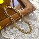 這條Celine頸鏈由環形鏈節組成,每個鏈節帶有獨特的扭繩紋理,並以品牌標誌性的凱旋門點綴,增添立體感與質感。除了做頸鏈外,也可以當手鍊兩用,可以自己調節長短。 頸鏈狀態不錯,整體有輕微使用痕跡,沒有氧化或生鏽,頸鏈背面突出的部分稍為變淺色,正面沒有明顯變色,附送飾物盒。 長43cm 闊1cm ** 台灣客人建議選擇「Pinkoi跨境直送」方法寄出,可免繳付進口關稅,配送時間也較順豐快遞快捷。