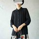 - →簡約壓褶設計/八分袖 →透膚黑色雪紡