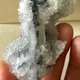 這顆原礦的方解石較少,比較多水晶花簇,像砂糖撒在礦石上。