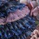胸元にはチュールやスパンコール・ビーズを飾り、身頃にはダーツを寄せております。 スカート部分にはチュールやフリル、レースをふんだんに使用しております。