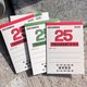 2025日曆卡更新,聖誕日款式,紅與綠色。