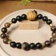 材質:臺灣黃金碧玉+8mm黑曜石+黃銅+10mm木化玉