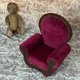 - 在法國覓得這張洋娃娃的古董迷你沙發,是精緻玩偶屋或大型人偶的完美傢俱,典雅的深酒紅色絲絨布搭配深色木材,邊緣鑲嵌一圈精美銅鉚釘,細節盡顯古典高貴。風格是新藝術時期的華麗與飽滿線條。