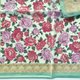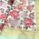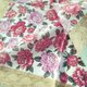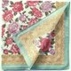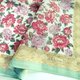 Vintage handkerchief beautifully printed with blooming pink and lilac peonies. Featuring lush, layered petals in deep and soft pink tones, the peony design represents timeless elegance, prosperity, and romance. The border features an ornate French-style gold frame design that evokes timeless elegance. Soft mint green edging adds a refreshing touch. A collectible piece full of vintage charm and romantic beauty.