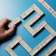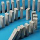 將積木接連排成直線、弧線或是你想要的線性,再將骨牌推倒形成骨牌效應。