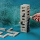 每層三塊交錯堆疊整齊成塔狀,再由玩家輪流將下方的積木抽出,堆疊到塔的最上層,期間不能移動最高三層的積木,而且只能用單手移動積木。積木塔倒塌即為遊戲結束,最後移動積木的玩家為輸!