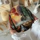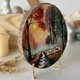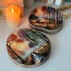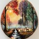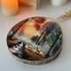 A unique painting of the forest at sunset on natural wood. Made with great attention to detail and colors. This rustic wooden slice is made of recycled trees, hand-painted with acrylic paints. The artwork is ready for shipment to find its new home and decorate it.