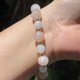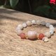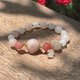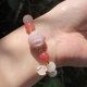 佘太翠小奶兔(磨砂質感)、佘太翠草莓牛奶珠(磨砂質感)、紅瑪瑙珠(光面)、漢白玉珠(光面)、k金配珠。以彈性繩串起,穿脫方便。