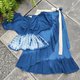 🌸專為嬌小女孩設計的💙側繫帶荷葉邊半身裙,後腰採用褶皺設計。採用柔軟耐穿的棉質布料,天然靛藍紮染賦予每件單品獨一無二的個性🌿。