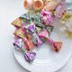 使用韓國進口的高單價質感印花壓布條、折成自行發想的立體蝴蝶結。