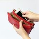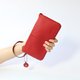 品名: 紅色荔枝壓紋牛皮拉鍊腕包