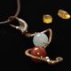 因緣際會開始接觸到金屬創作,從一開始的鋁線擺件、後以銅線纏繞鉍晶體做成墜飾、再因和朋友交流下,接觸蘊含白堊紀(6500萬~1億多年前)動植物的樹液化石:緬甸琥珀(琥珀中年份最久(至少8千萬~1億2千多萬)、種類最多、硬度最高(莫式硬度2.5)、亦開始認識充滿各式色彩與能量的水晶,並開始「鉍元素SBI」的創作之旅。