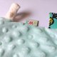 塑膠球的聲響與內裡的響紙,讓寶寶專注在安撫巾上面