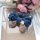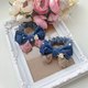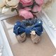 使用韓國進口、上面有燙銀星星的丹寧織帶,搭配素色織帶製作成拼色蝴蝶結;蝴蝶結是自行發想的,不會到處撞款;另外因為蝴蝶結不大,適合喜歡低調點的買家。