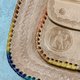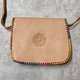 周邊是皮繩編織、圖騰手工壓印,a.k.a. 駱駝包。