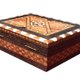 1950年代英國手工鑲嵌木盒。由五種以上不同木料拼接鑲嵌製作。