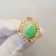 Special! Burmese jade ring (Natural color) decorated with Pink sapphire, White topaz, 925 Silver , gold plated