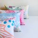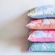 用最輕薄的桃皮絨布料,與粉嫩色調的蕨美圖紋,在春夏時節給您安心又透氣的舒適質感。
