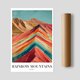 《祕魯彩虹山 Rainbow Mountains of Peru》以飽和色彩與抽象筆觸重現南美洲最壯觀的自然奇景。畫面中央的山脊如流動的色帶,由礦石沉積形成的紅、橙、黃、藍層層交錯,彷彿大地親手繪出的畫布。