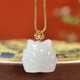 **〔 簡介 〕:一款非常精緻漂亮的和田玉18k九尾狐吊墜,寓意吉祥如意,雕工精緻,上身簡單大方,尺寸約:17.2*18*12.6mm,重:5.9克