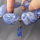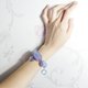 呼應藍紋瑪瑙的藍色調,鍊身3處(**三元及第**)飾以藍瑪瑙戒環2只(**好事成雙**),鑽面閃耀、晶體透亮、水光極美,融合**玉振金聲(象徵智慧、德行、君子、美女)**概念,寶石敲擊聲響宛若**銀鈴**悅耳,如有君子(美女)來,使配戴賞玩饒富趣味,風韻細緻,靜謐優雅之餘,不失大器、富貴、優雅之情。