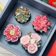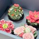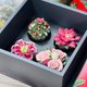 深邃黑色烘托花藝造型的鮮豔與細膩,使甜點如藝術品般在盒內靜靜綻放。