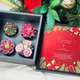 「耶誕花園」以冬季花卉與節慶色彩為靈感,將四款職人手工花藝甜點,收納於 霧黑質感禮盒 中。