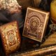 這套卡牌將你帶入史詩故事的核心,呈現出古希臘神祇、英雄與神話生物的震撼畫面。從宙斯的莊嚴優雅到雅典娜的勇猛風姿,宮廷牌以精細的細節和鮮明的色彩,讓萬神殿(的眾神)栩栩如生。背景有著奢華的羊皮紙風格紋理,而客製的點數和花色則無縫融入了神話主題。牌背設計是古典圖案與象徵意象的華麗融合,散發著永恆的優雅氣息。