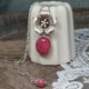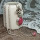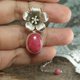 天然 薔薇輝石 鍛敲銀花 手工銀飾墜鍊
