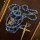 ✨【法國天主教 1950年代 藍色玻璃珠 鍍銀十字架 玫瑰經念珠】✨