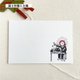 背景色は、絵の面は少し黄みがかった明るいグレー、宛名面は真っ白です。