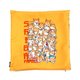 A unique comic design printed on a canvas pillow case using direct printing or heat transfer process.