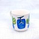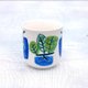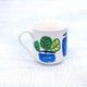 コバルトブルーの、柿をユーモラスにデフォルメしデザイン化した模様のマグカップです。