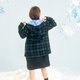 - 有點特別的學院風格紋大衣~ 搭配同花色的布扣細節超CUTE🎁💖