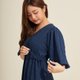 Ruffle design long dress made with flowy fabric. Feature puffed short sleeves, detailed V-neck and bow fastening on the back. Adjustable draw cord on waistline with long ribbon detail on both sides make this dress fits all body types.